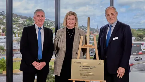 Tresillian president Dr Nick Kowalenko with chief executive Rob Mills and Tasmanian Health Minister Bridget Archer at the official opening of the Tresillian North Intensive Parenting Unit on November 28.